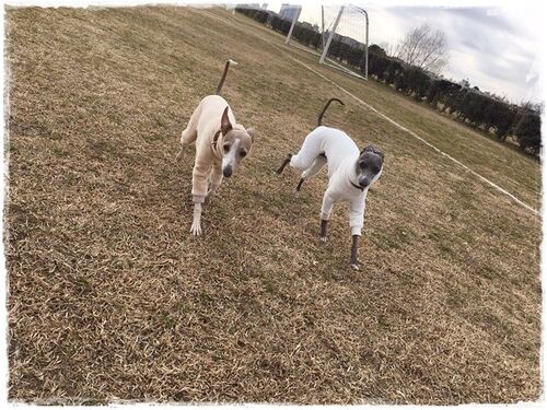 きのうのお話...すごーく寒かったけどランに行ってきたよ!久々のスッキプ先輩に会えました~^^ 初めまして!のばぶティノは一緒に探検♪ 寒いからボクは走らない日!だけど ちょっとだけ怪獣の相手しました~! ばぶティノは柴犬さんと遊んだり~ フレブルさ…
