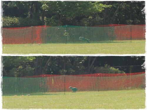 昨日のIGLE杯、前回と同じくL字カーブの100m。まずはジーノ! まぁまぁのスタートするも... 毎度のことながらカーブに向かって腰が高くなりぴょこん!びょーん!!を繰り返し...でもルアーは見てるかな?? 見てるっぽい? 1走目:10.131秒 2走目:10.510秒…