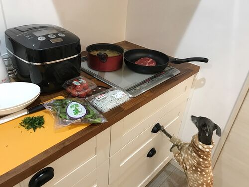 つづき...夕寝してたら良い香りがしてきた~(≧∇≦) 乾杯しちゃってさ~ ボクたちのゴハンはまだかな~?? パパとママのゴハンが終わったぁ!ボクたちの番だ~~(≧∇≦) お泊り会の時はいつもカリカリだったけど今回は違ったんだ~(*^^*) 鶏むね肉、お家か…