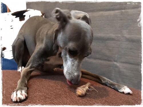 ひとりっこの時は、たまにアキレスとかトサカをおやつにもらえたけど...硬いものは歯に悪いみたいで、もらえなくなって...(-""-)でもきょうは特別~(≧∇≦)お買物のおまけでもらった馬テール♬ カジカジカジカジ...久々の食感~(๑´ڡ`๑) ばぶティノも上手に支…